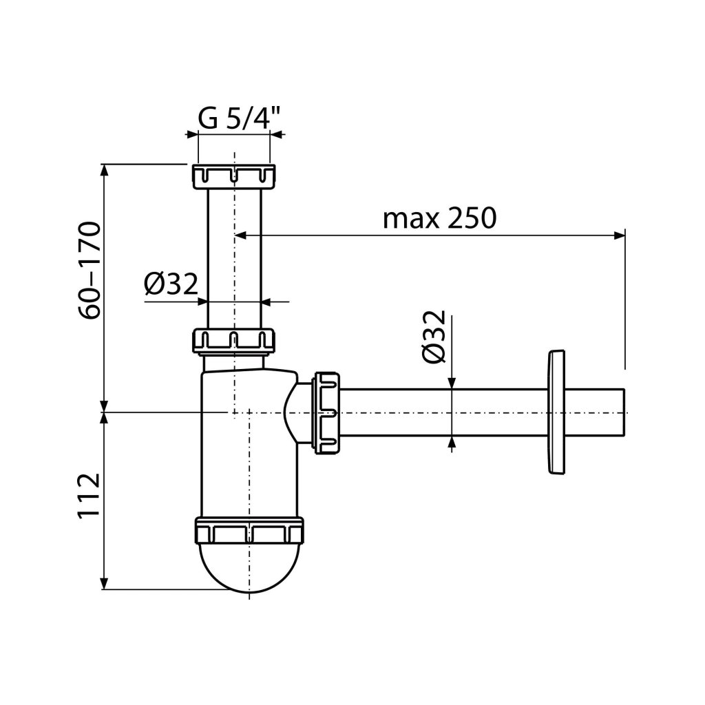 Alca sifón umývadlový DN32 s prevlečnou maticou DN63 (A430)