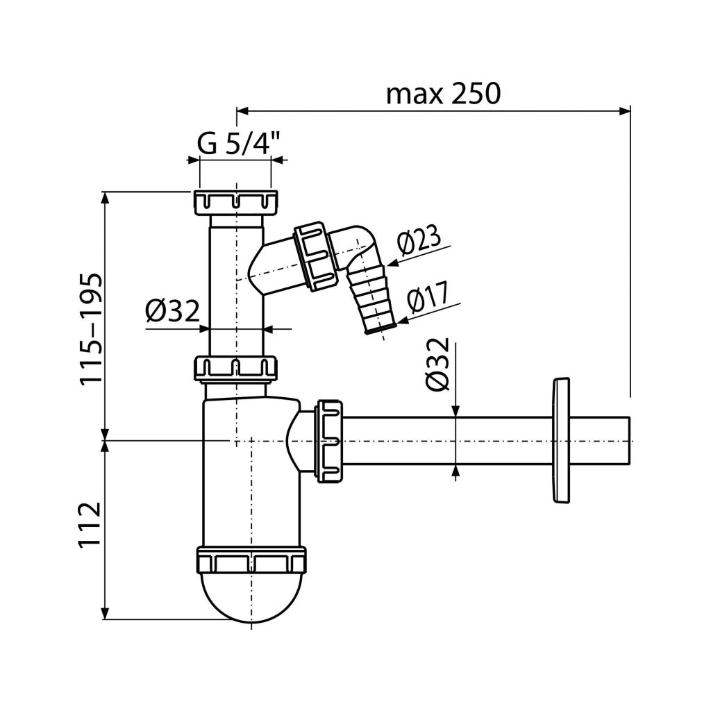 Alca sifón umývadlový DN32 s pripojkou a prevlečnou maticou (A430P)