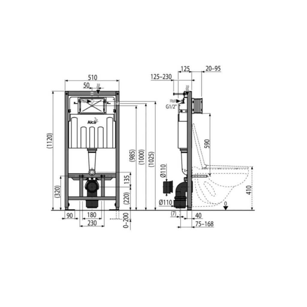 Alcadrain (Alcaplast) Set 5v1 Sadromodul AM101/1120 + tlačítko M1710 + izolácia M91 + WC OVALE BASSO RIMLESS