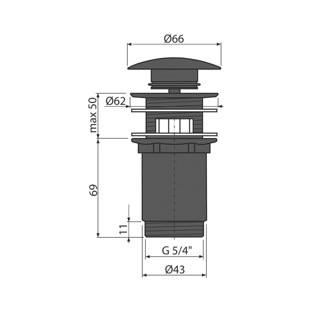 Alcadrain - Click-Clack na umývadlo s prepadom, celokovový v čiernom prevedení (A392BLACK)