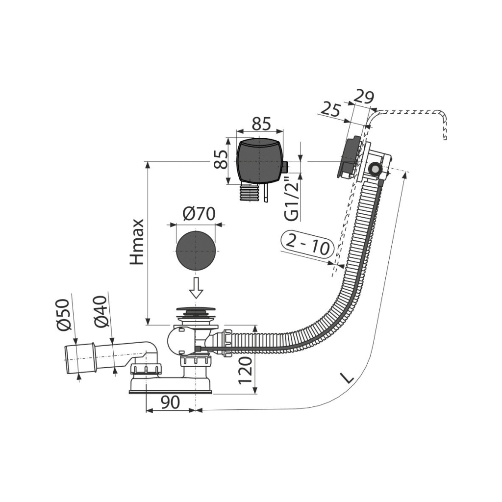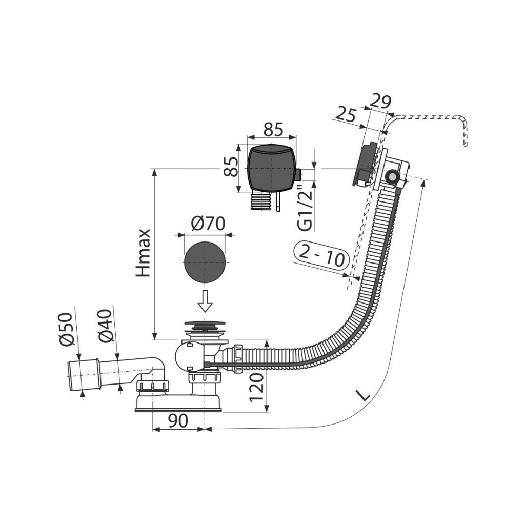 Vaňový automat Alcadrain s napúšťaním cez prepad A564BLACK