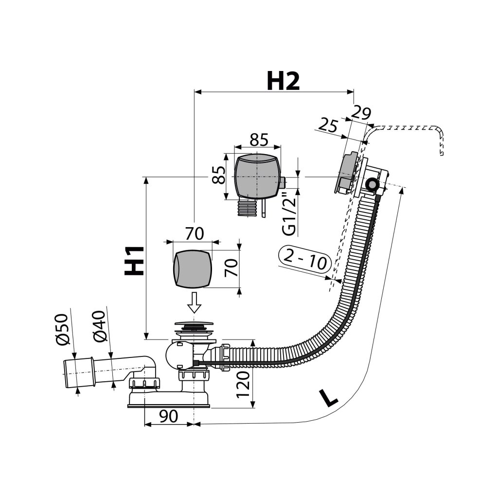 Vaňový automat Alcadrain s napúšťaním cez prepad A564KM3