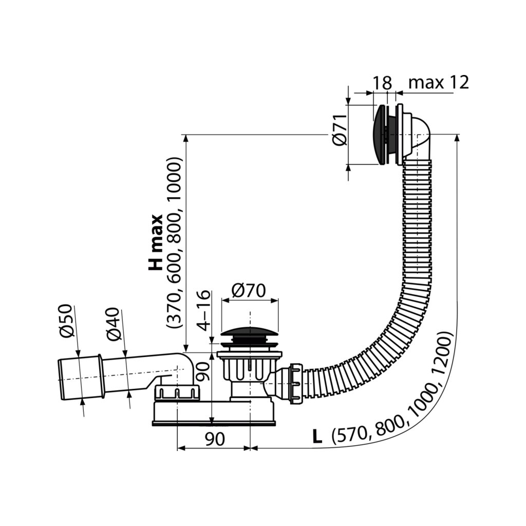 Alcadrain - vaňový sifón click-clack A507BLACK kov čierna matná