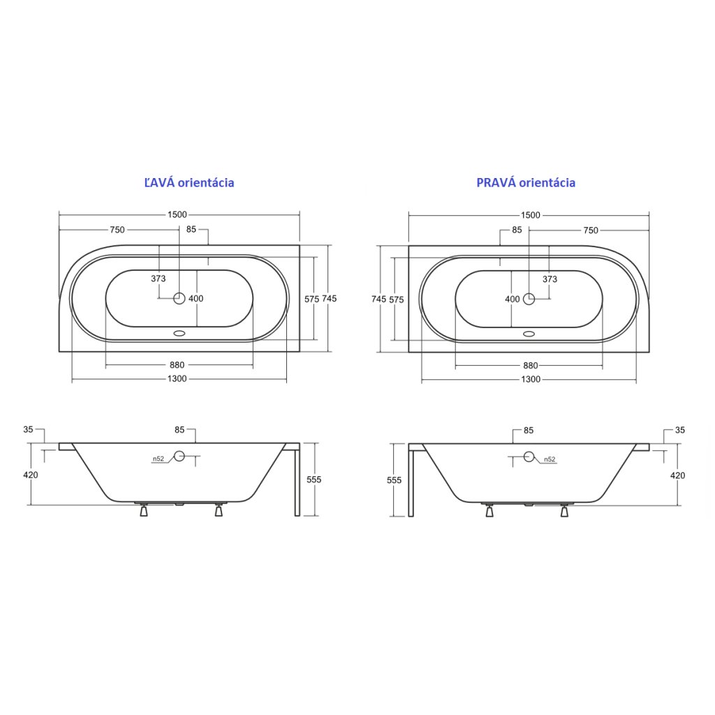 Asymetrická akrylátová vaňa Besco AVITA 150x75 cm (#WAV-150-NP)