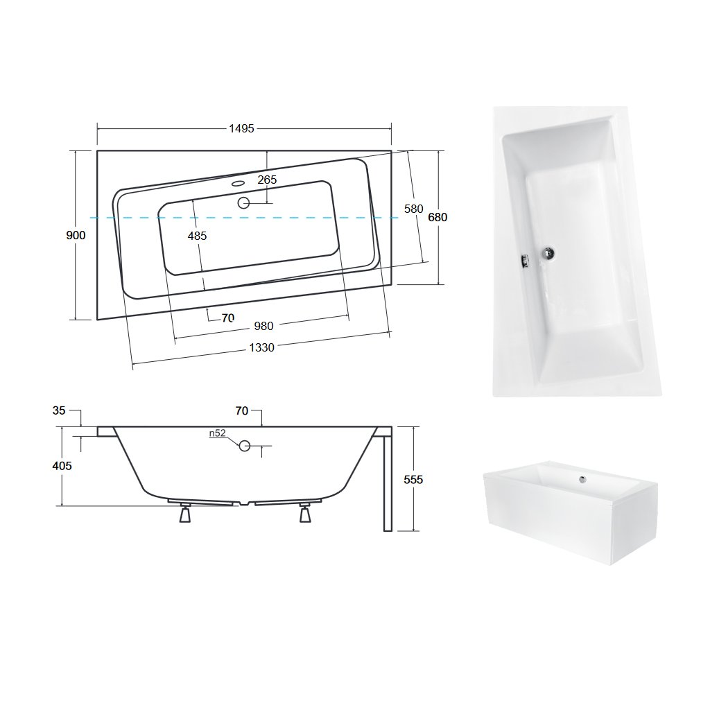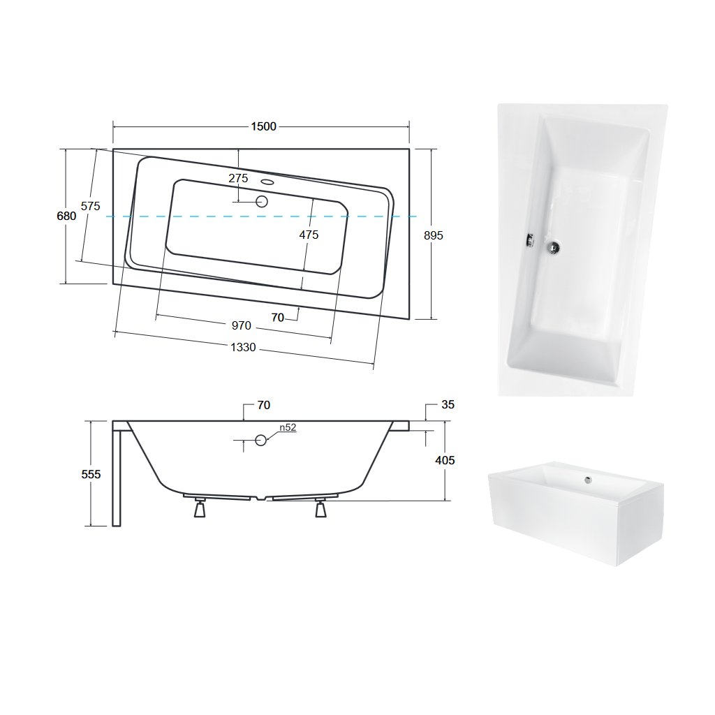 Asymetrická akrylátová vaňa Besco INFINITY 150x90 cm (#WAI-150-NP)