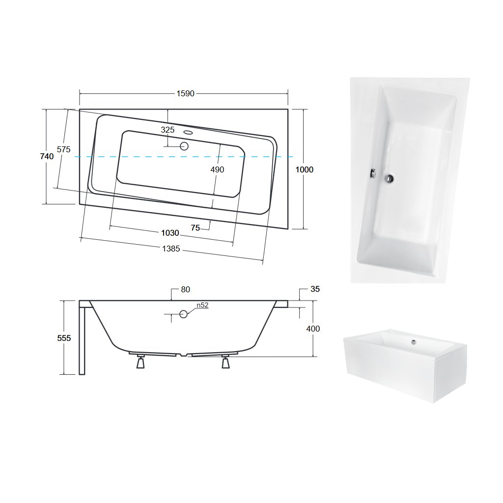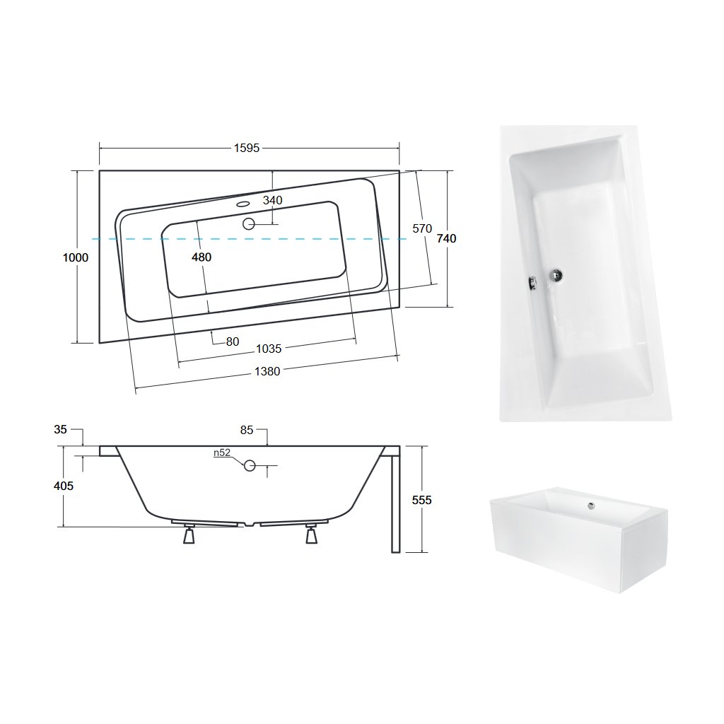 Asymetrická akrylátová vaňa Besco INFINITY 160x100 cm (#WAI-160-NP)