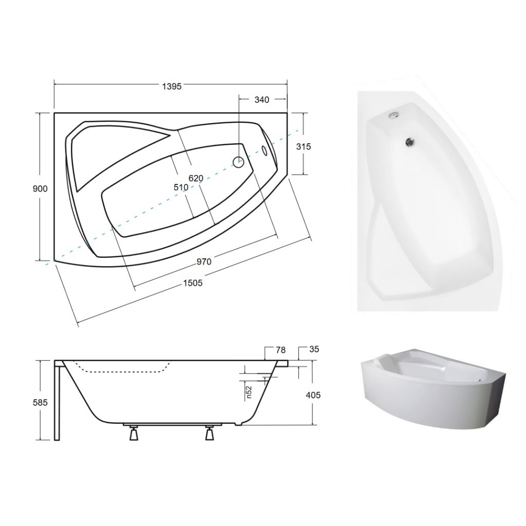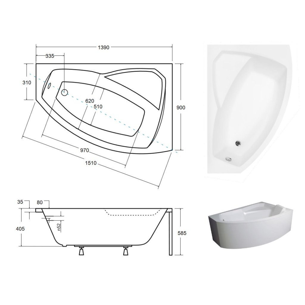 - výška vane: 58,5 cm