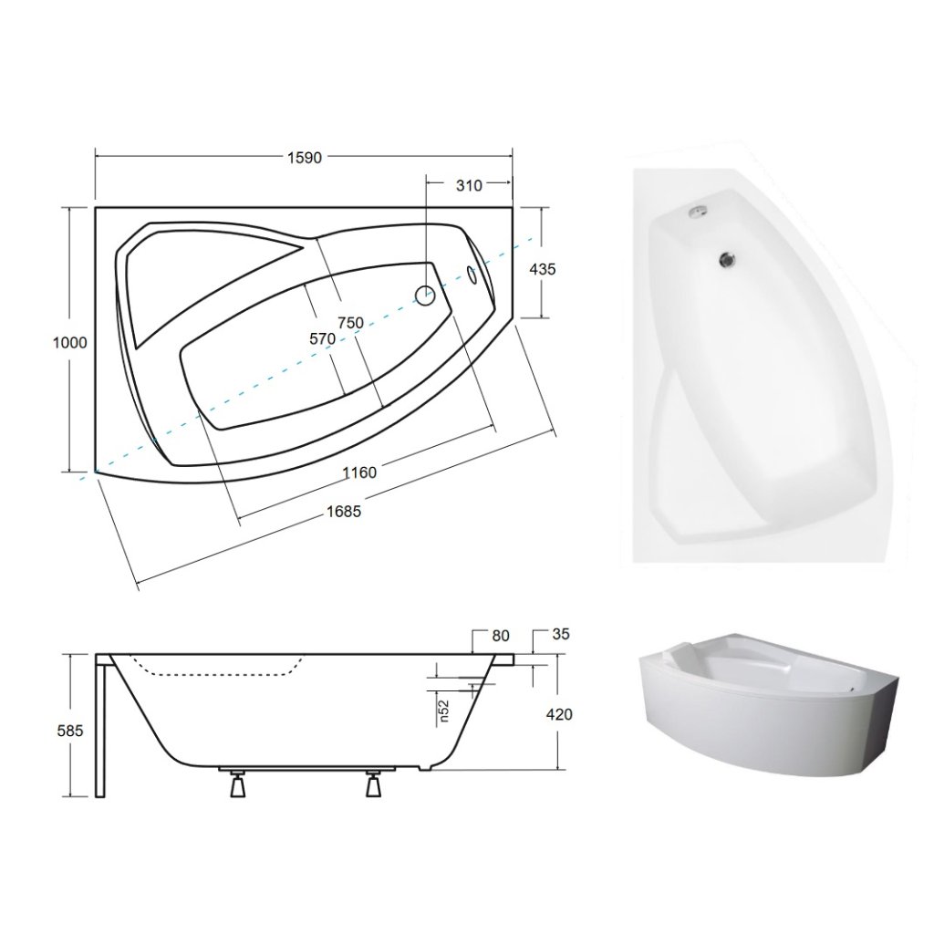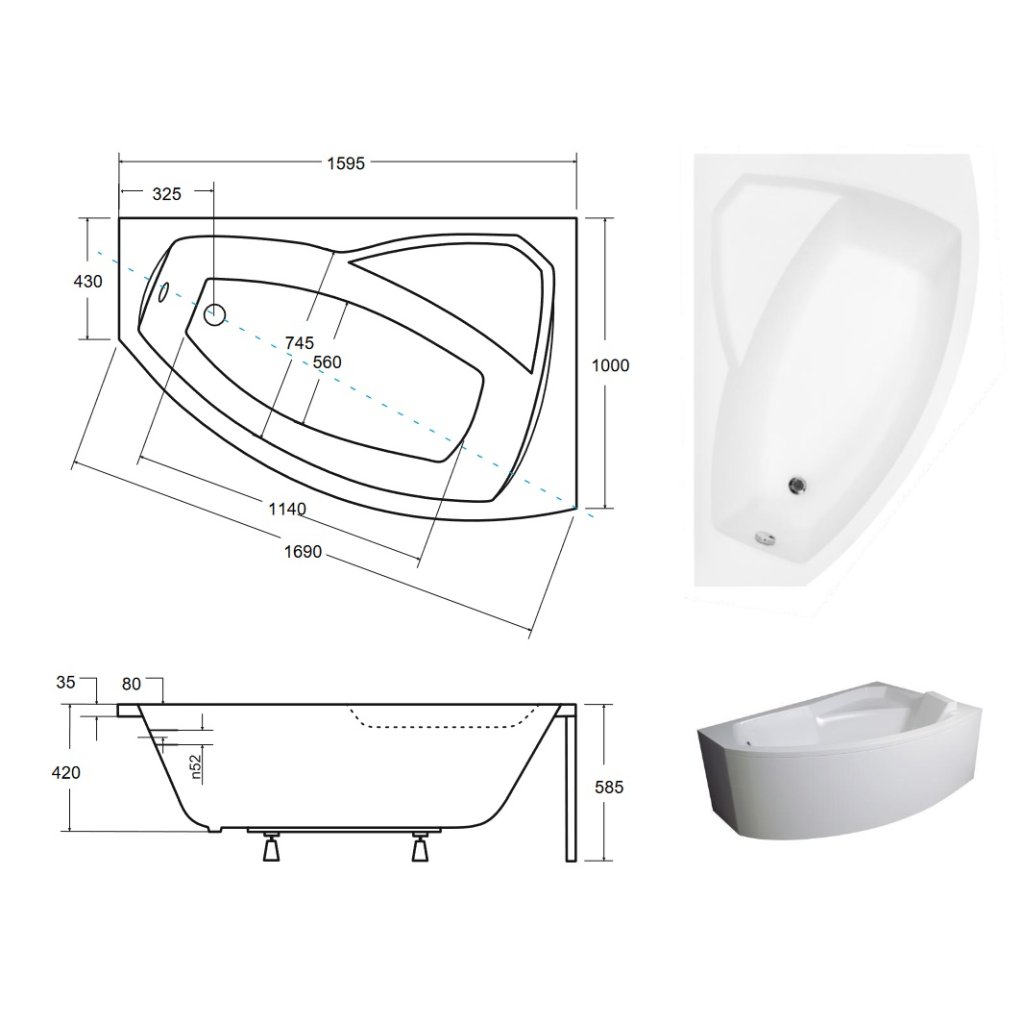 Asymetrická akrylátová vaňa Besco RIMA 160x100 cm (#WAR-160-NP)