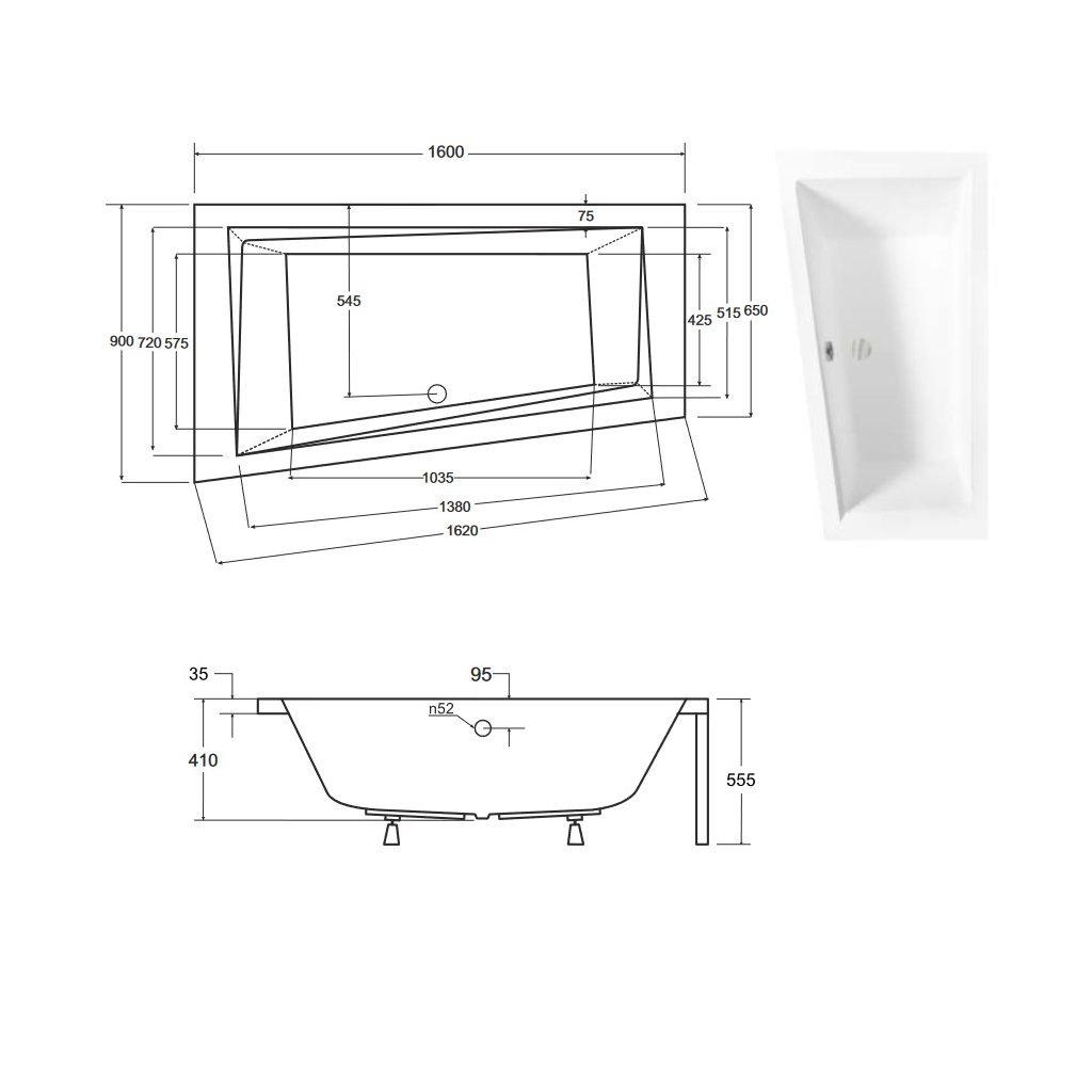 Asymetrická hydromasážna vaňa Sanovo DIOR KOMBI ELEKTRO 160x90 cm (DIO_160x90KE)
