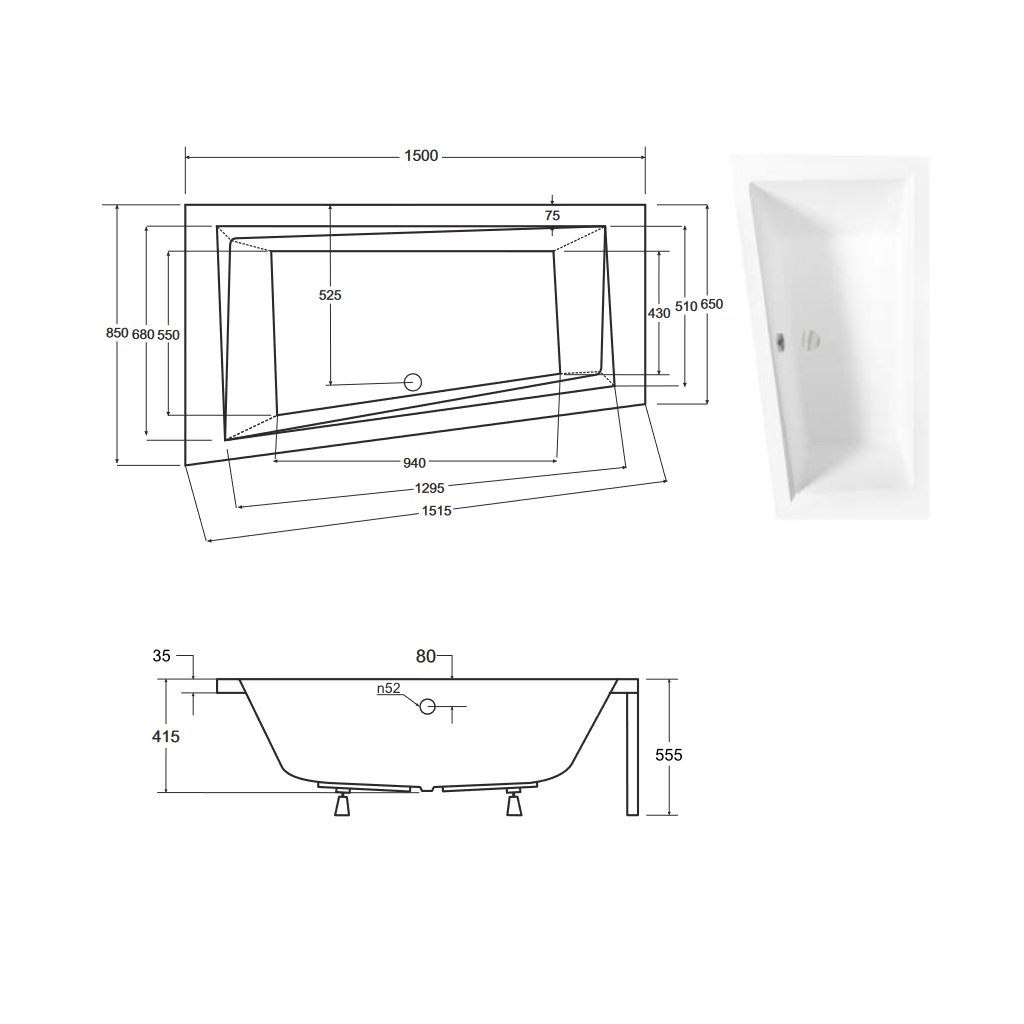 Asymetrická hydromasážna vaňa Sanovo DIOR KOMBI pneu 150x85 cm (DIO_150x85K)