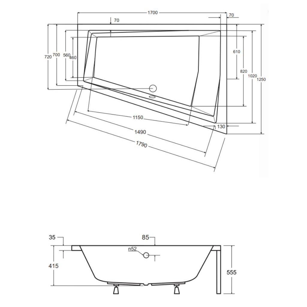 Asymetrická hydromasážna vaňa Sanovo DIOR KOMBI pneu 170x125 (DIO_170x125KP)