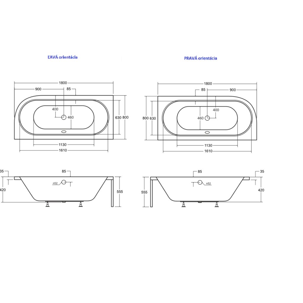 Asymetrická hydromasážna vaňa Sanovo FUCHSIA AIR 180x80 (FUCH_180x80AP)