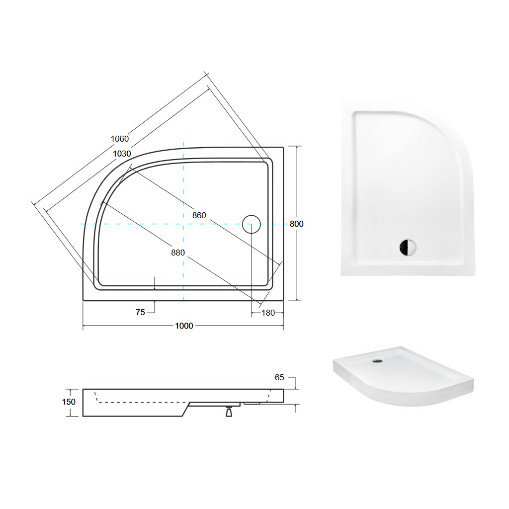 Asymetrické sprchové vaničky Besco Saturn z akrylátu 100x80x15 cm