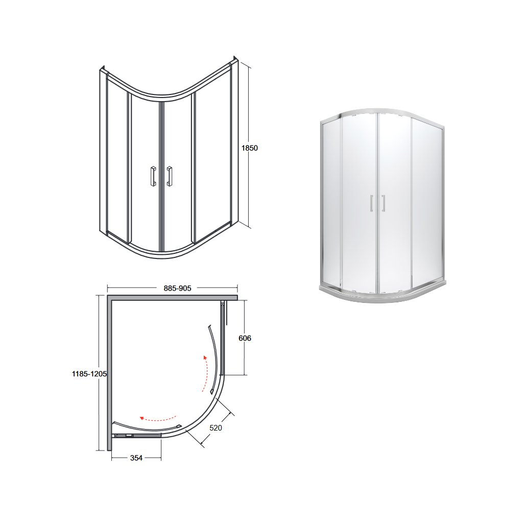Sprchový kút je praktický svojim jedinečným rozmerom. Jeho tvar Vám dokáže ušetriť miesto k kúpeľni a pri sprchovaní sa budete cítiť priestranné. Sprchový kút je možné umiestniť na podlahu alebo na sprchovú vaničku. Otváranie sprchových dverí je vždy len z boku sprchového kútu.