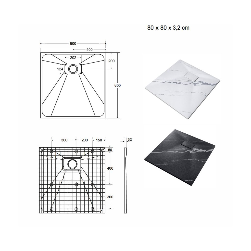 Besco - štvorcová sprchová vanička z SMC Vexo Marble 80x80x3 cm