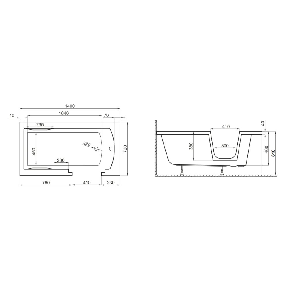 Bezbariérová vaňa s dvierkami Polimat AVO 140x70 (00306)