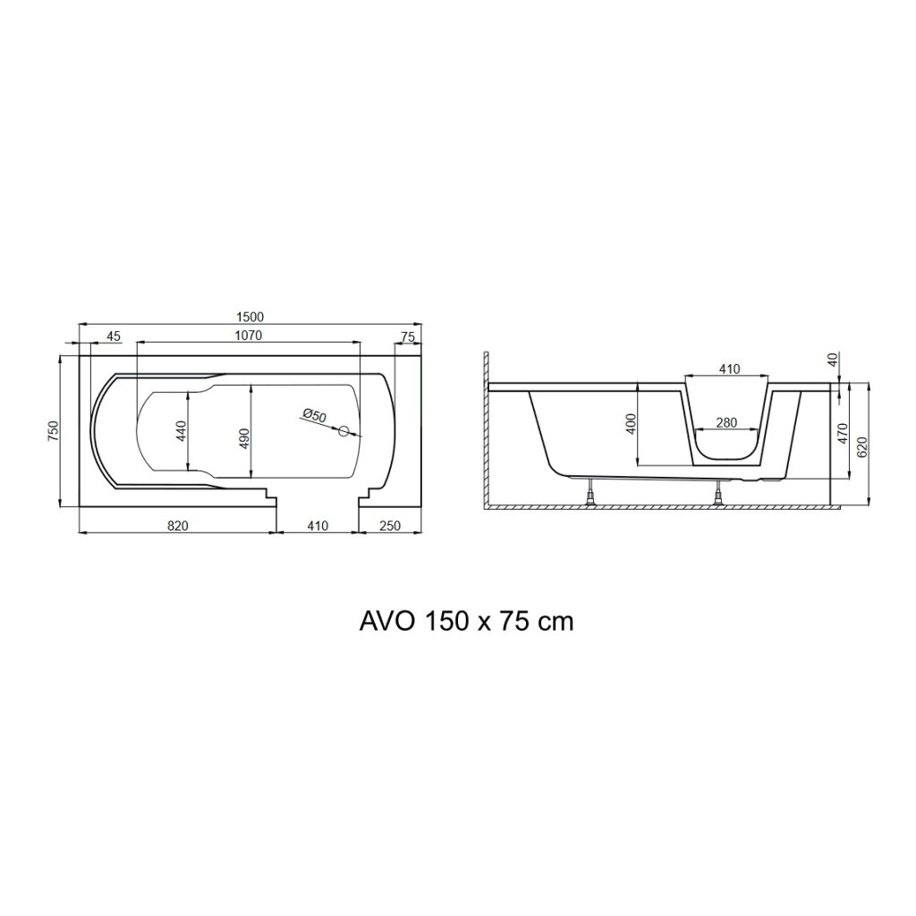 Bezbariérová vaňa s dvierkami AVO 150x75 cm