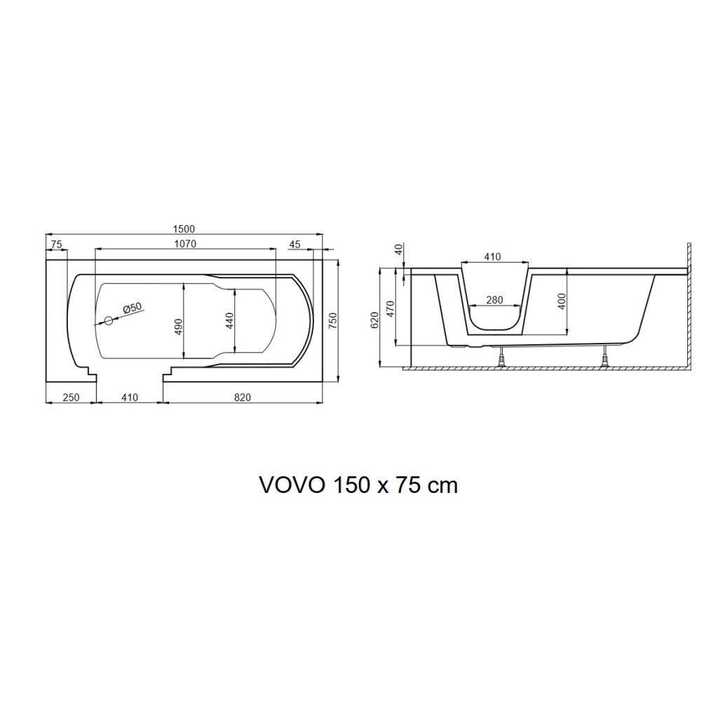 Bezbariérová vaňa s dvierkami Polimat VOVO 150x75 (00484)