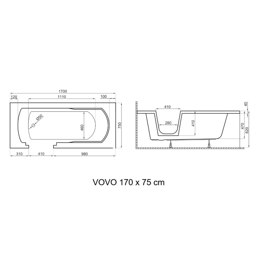 Bezbariérová vaňa s dvierkami VOVO 170x75 cm