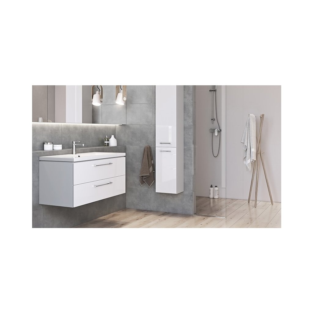 Súčasťou zostavy je závesná umývadlová skrinka LARA WHITE 80 s umývadlom MILLE 80. Čelo a korpus skrinky sú vyrobené z drevotriesky hrúbky 16 mm, lakované bielou farbou. Skrinka má dve priestranné zásuvky s tichým zatváraním a pochrómovanými dlhšími úchytkami.