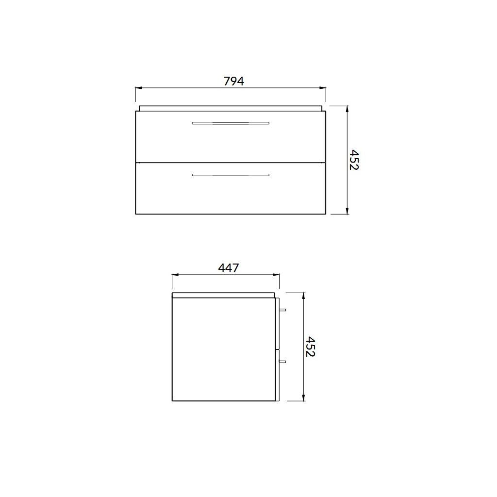 Súčasťou zostavy je závesná umývadlová skrinka LARA WHITE 80 s umývadlom MILLE 80. Čelo a korpus skrinky sú vyrobené z drevotriesky hrúbky 16 mm, lakované bielou farbou. Skrinka má dve priestranné zásuvky s tichým zatváraním a pochrómovanými dlhšími úchytkami.