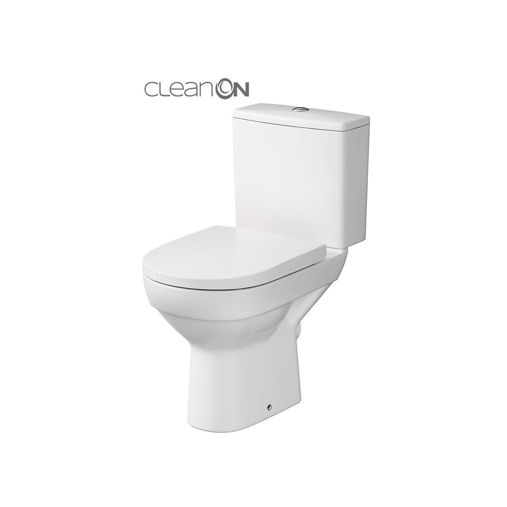 Kompaktná súprava WC City CleanOn sa vyznačuje moderným dizajnom a výnimočnou bielou Cersanit. Inovatívna technológia CleanOn rozvádza vodu do všetkých kútov vo vnútri záchodovej misy. Bezrámový dizajn eliminuje akékoľvek zákutia, kde sa môžu hromadiť nečistoty, baktérie a choroboplodné zárodky. Kompaktná súprava WC je dodávaná so splachovacím systémom 3/5 l. Kompaktná súprava WC je dodávaná s horizontálnym odtokom s bočným prívodom vody na splachovacej nádrže. V cene je WC kompaktný set s antibakteriálnym, soft-close duraplast sedátkom.