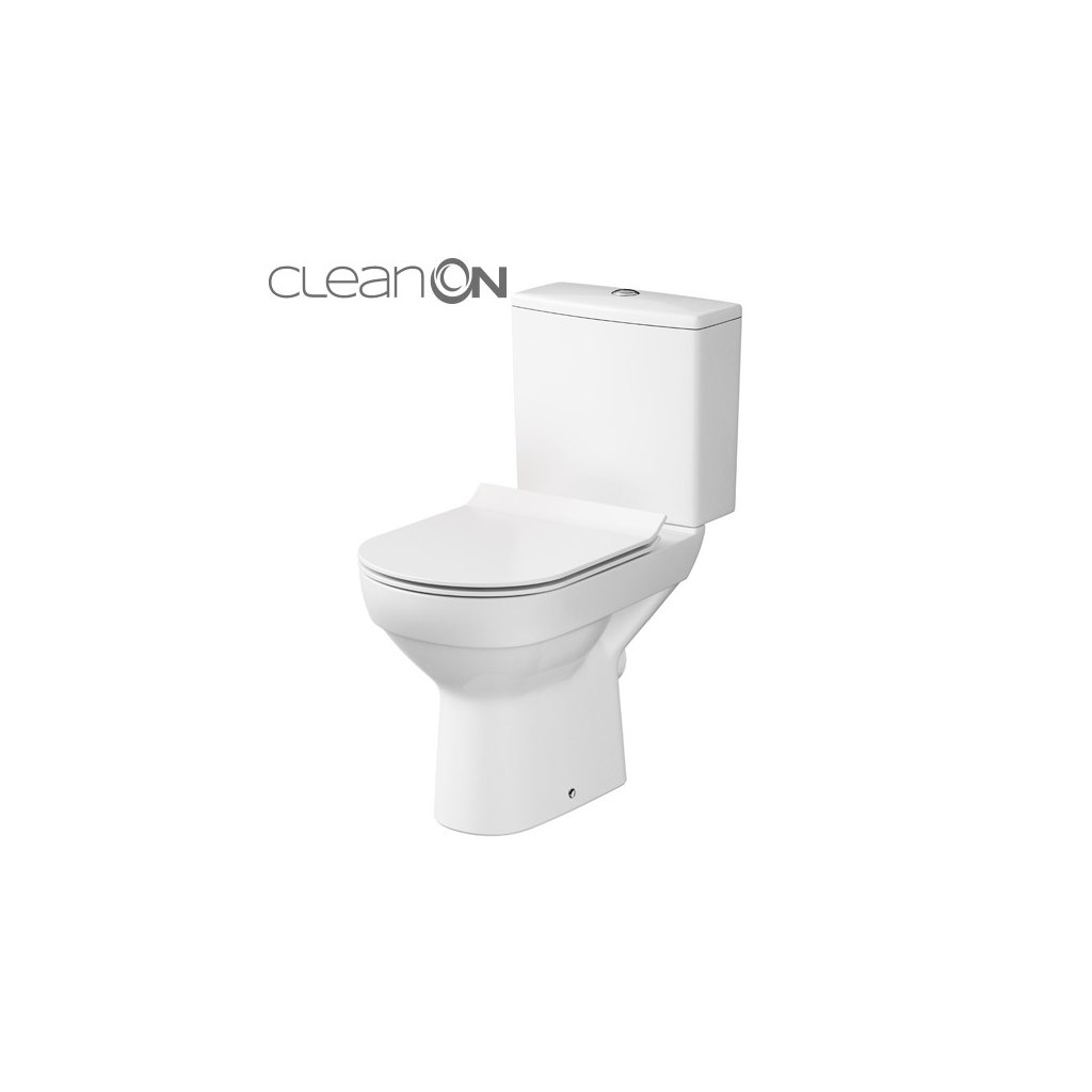 Kompaktná súprava WC City CleanOn sa vyznačuje moderným dizajnom a výnimočnou bielou Cersanit. Inovatívna technológia CleanOn rozvádza vodu do všetkých kútov vo vnútri záchodovej misy. Bezrámový dizajn eliminuje akékoľvek zákutia, kde sa môžu hromadiť nečistoty, baktérie a choroboplodné zárodky. Kompaktná súprava WC je dodávaná so splachovacím systémom 3/5 l. Kompaktná súprava WC je dodávaná s horizontálnym odtokom s bočným prívodom vody na splachovacej nádrže. V cene je WC kompaktný set s antibakteriálnym, soft-close a Easy-Off duraplast sedátkom.