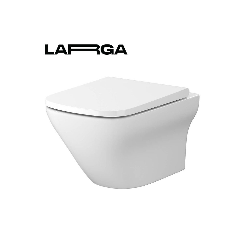 Závesná misa LARGA, CLEAN ON s unikátnym bielym povrchom keramiky /bez oplachového kruhu/ so zadným odtokom, funkcia splachovania 3,5 l, ktorá výrazne zníži spotrebu vody.