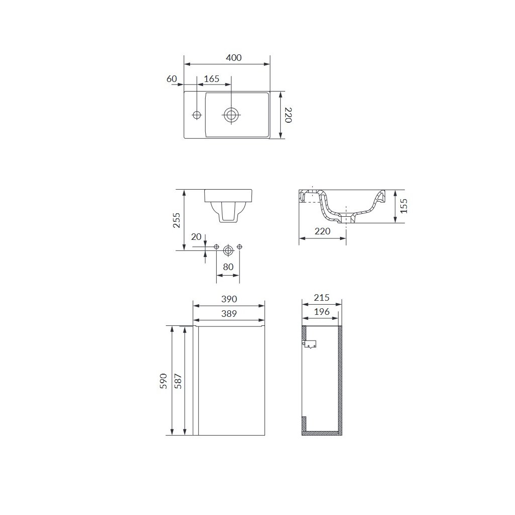 Závesná skrinka MODUO 40 v bielom prevedení s keramickým umývadlom.
