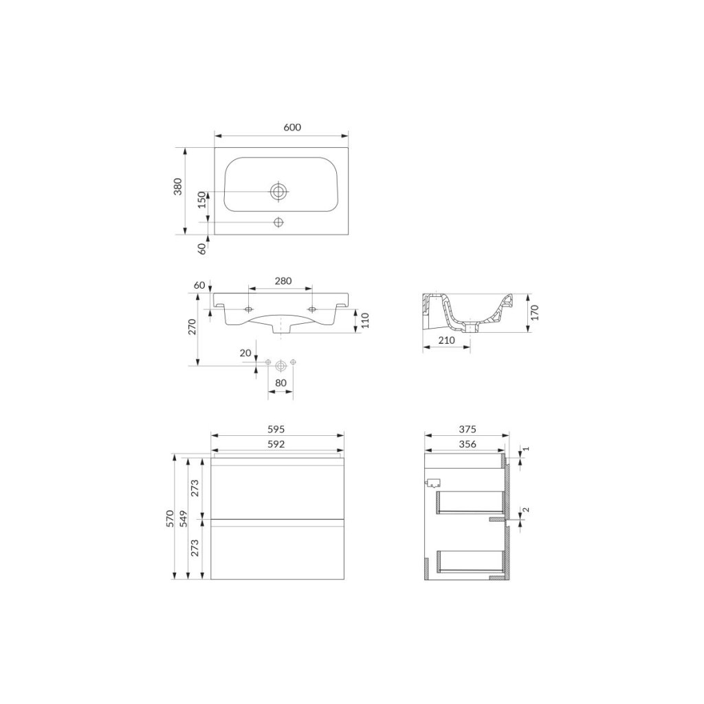 CERSANIT - SET MODUO SLIM skrinka 60 bežová s umývadlom DSM (S801-594-DSM)