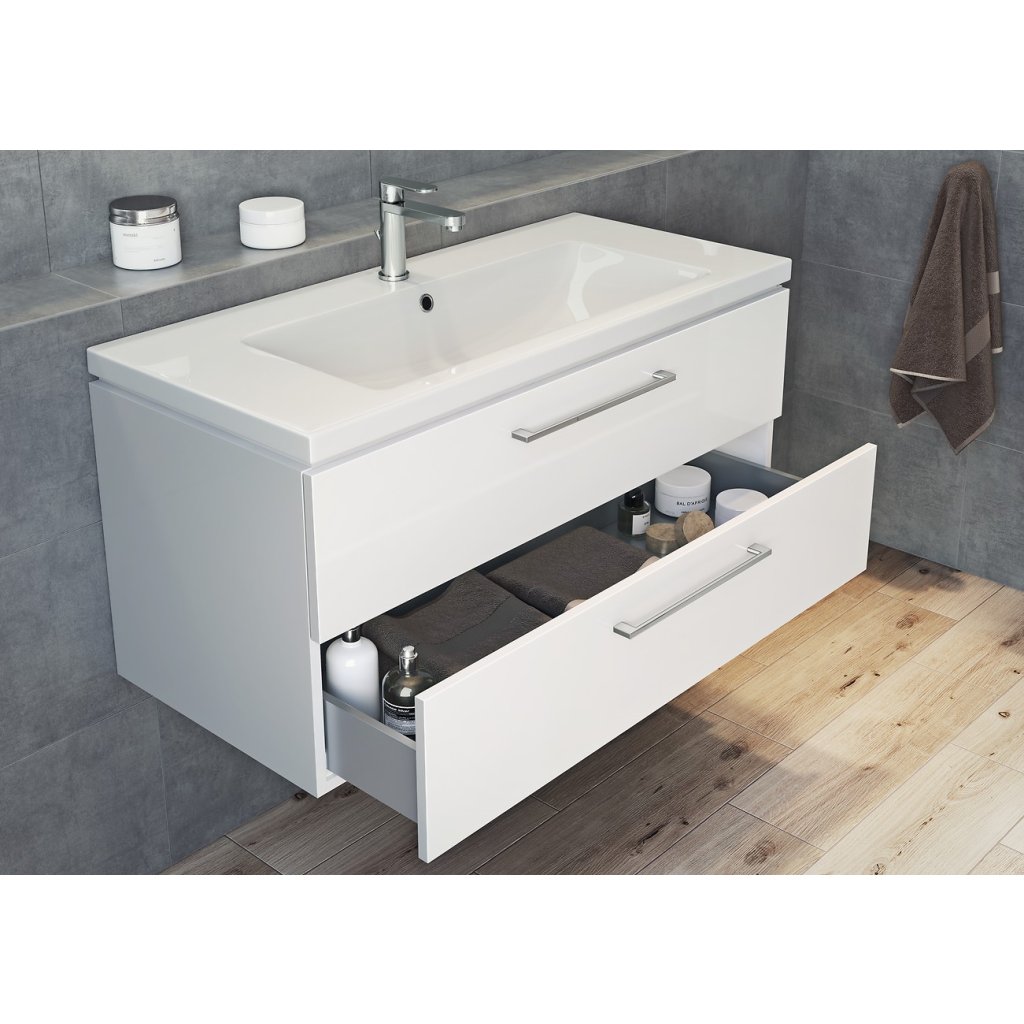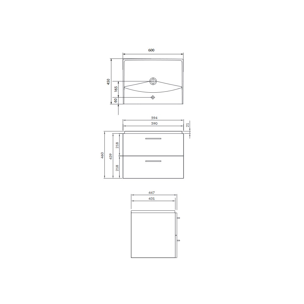 Súčasťou zostavy je závesná umývadlová skrinka CERSANIT LARA biela 60 s umývadlom CITY 60, Čelo a korpus skrinky sú vyrobené z drevotriesky 16 mm, lakované bielou farbou. Skrinka má dve priestranné zásuvky s tichým zatváraním. Šuplíky sú vybavené s chrómovými úchytkami.
