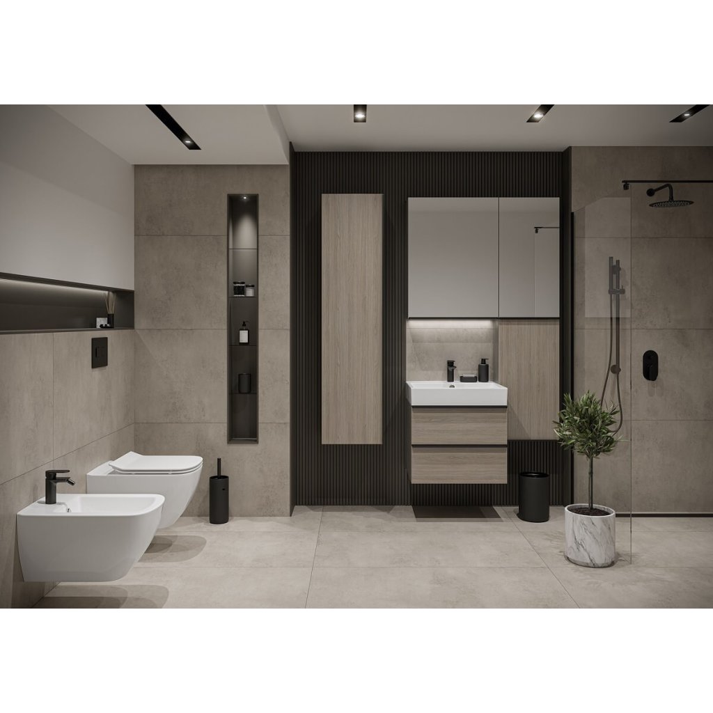 Vysoká skrinka Cersanit séria VIRGO v prevedením šedý orech s čiernym úchytom