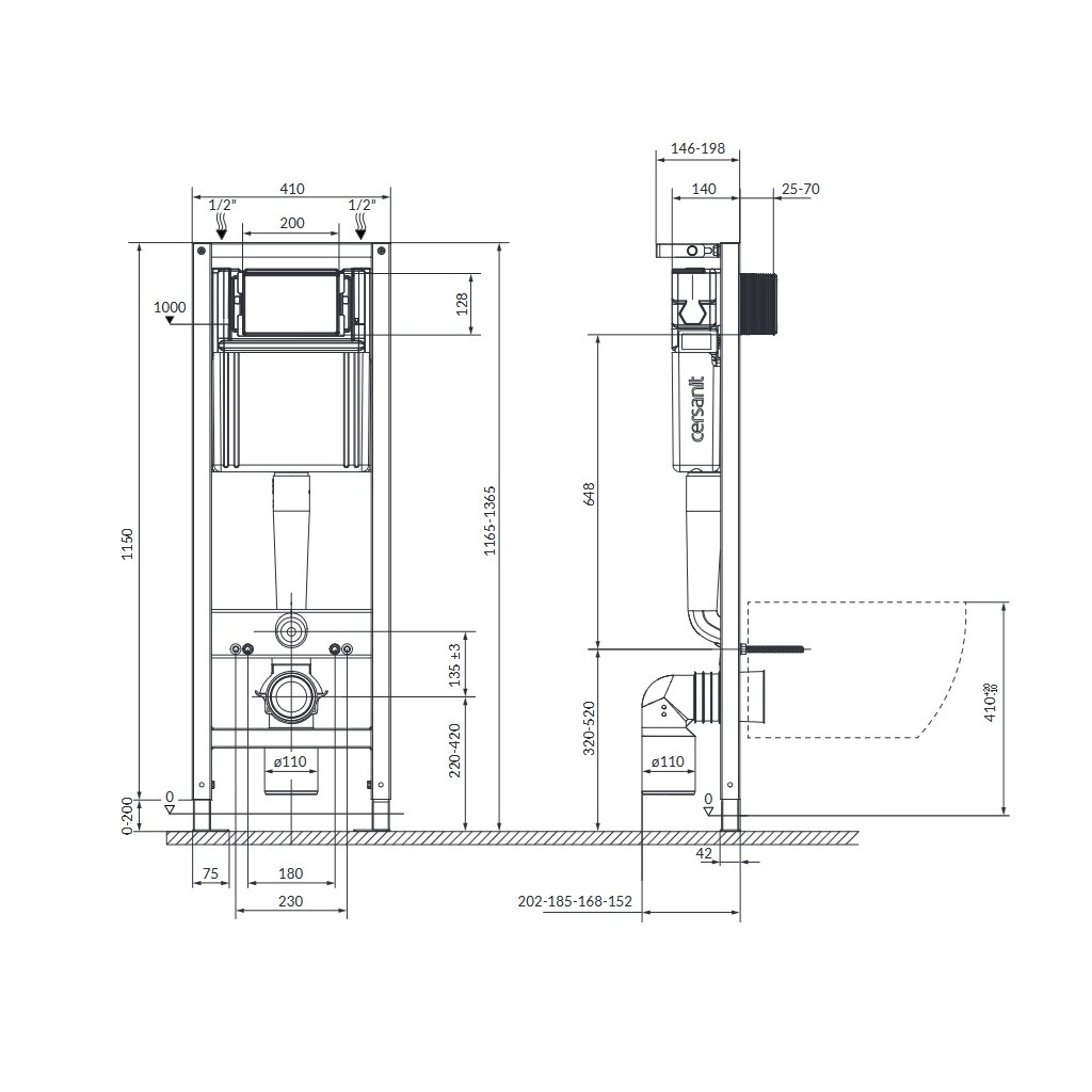 WC podomietkový systém, pre suchú inštaláciu. Odolný, úzky rám - iba 41 cm. Zaručuje dlhodobé a bezproblémové používanie.