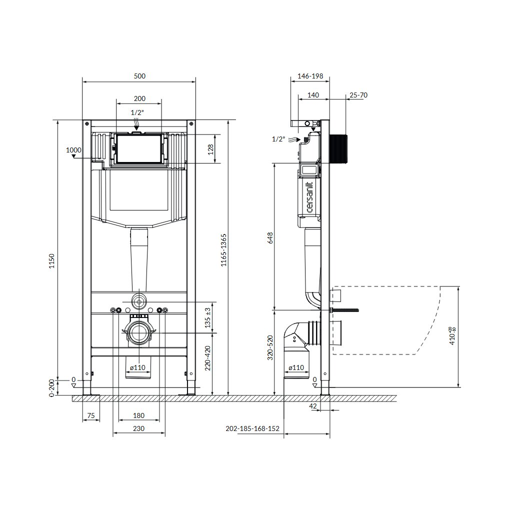 Podomietkový systém SYSTEM 50 MECH set s wc záchodom a tlačítkom
