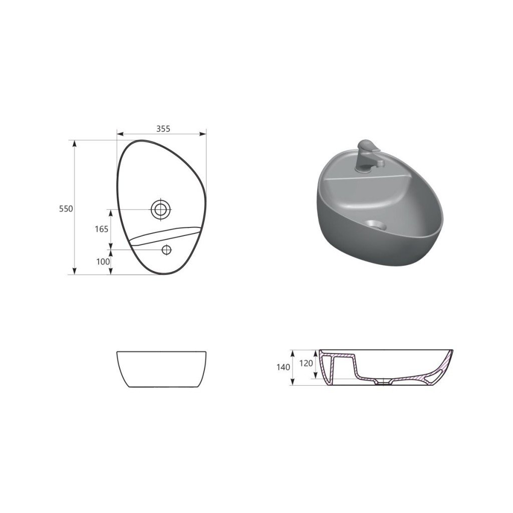 CERSANIT - Umývadlo na dosku MODUO ROUND 55x35 s otvorom pre batériu (K116-155)