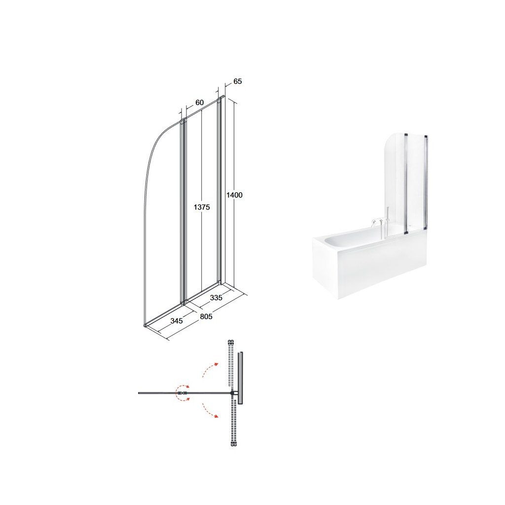 - vaňová zástena dvojdielna 80,5x140 cm