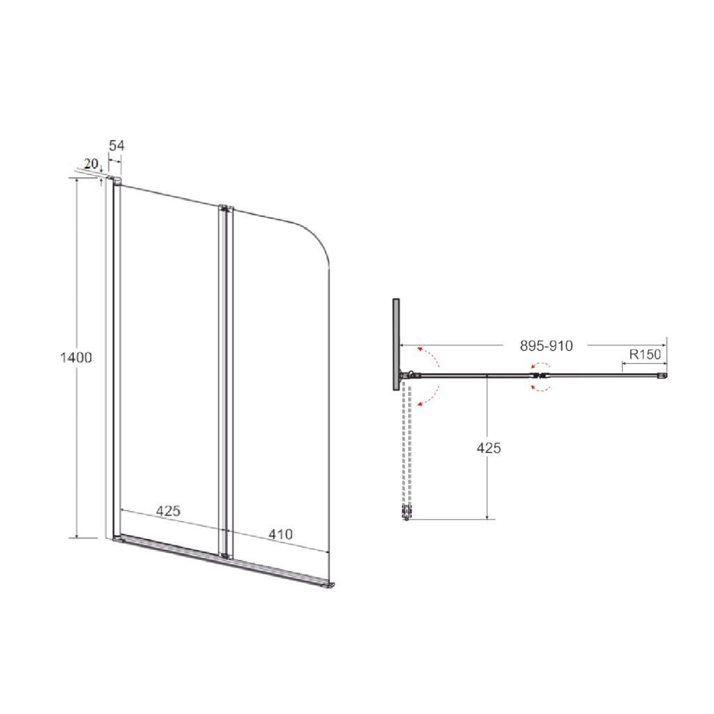 Dvojdielna vaňová zástena Besco PRIME 2 90x140 cm (PNP-2S)