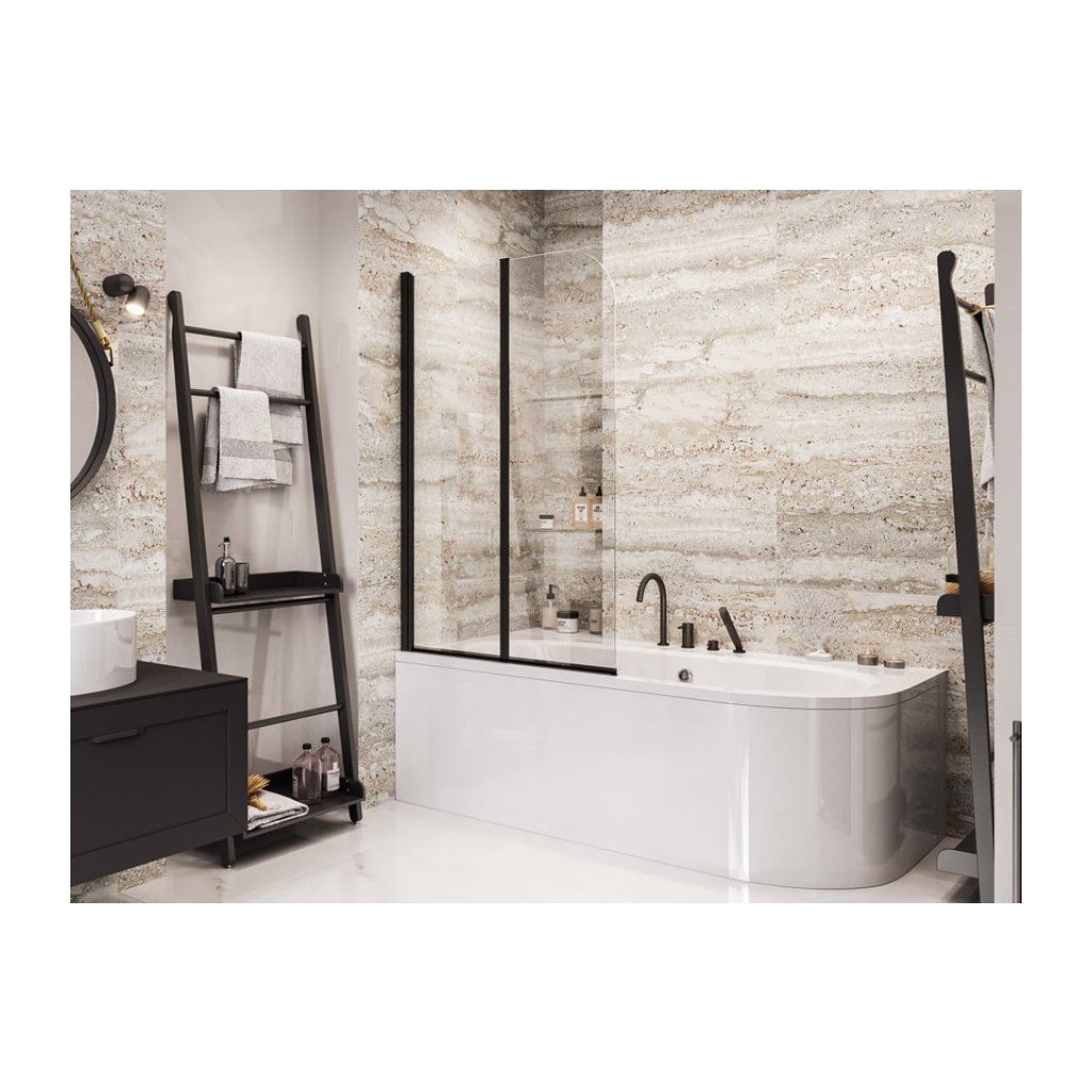 Dvojdielna vaňová zástena Besco PRIME BLACK 2 90x140 cm (PNPB-2S)