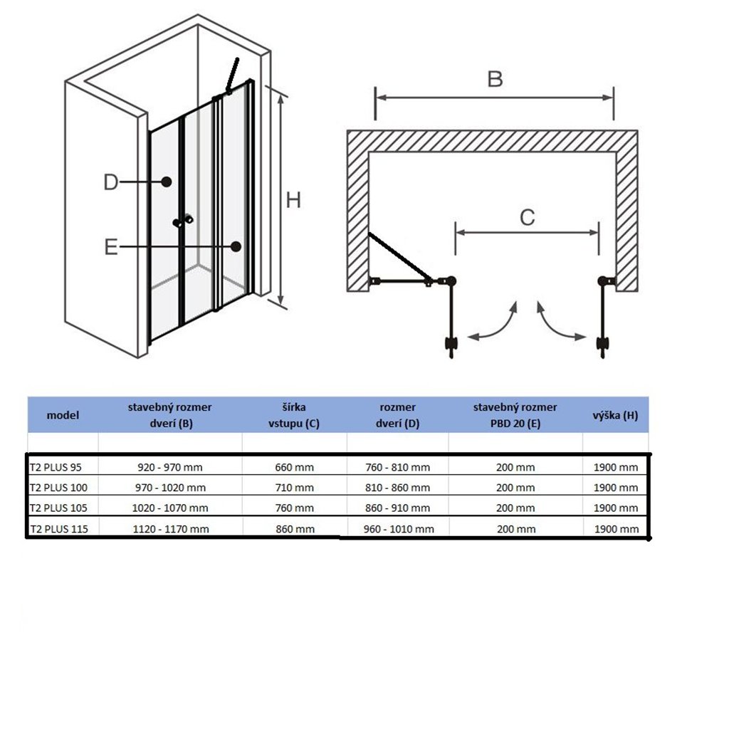 - výška sprchových dverí: 190 cm