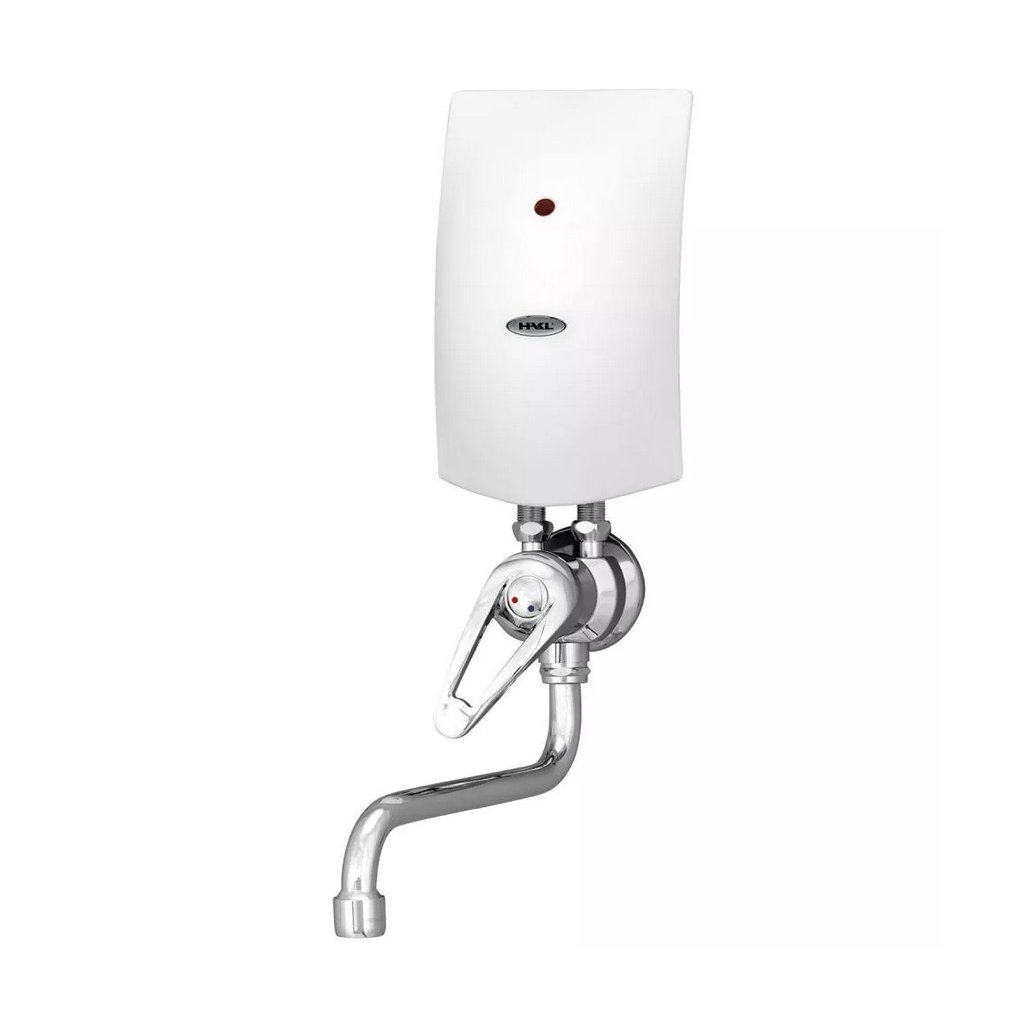 Pre jednoduchší nákup je el. prietokový ohrievač vody HAKL PM-B SET dodávaný spolu s vodovodnou beztlakovou nástennou klasickou batériou HAKL, s dĺžkou výtokového ramienka 20 cm.