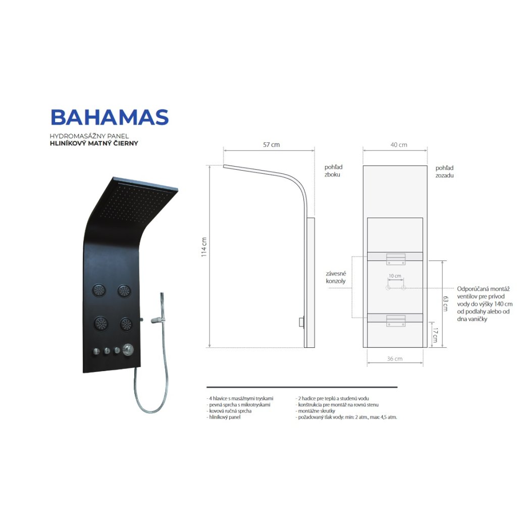 Hliníkový sprchový panel BAHAMAS s termostatickou batériou