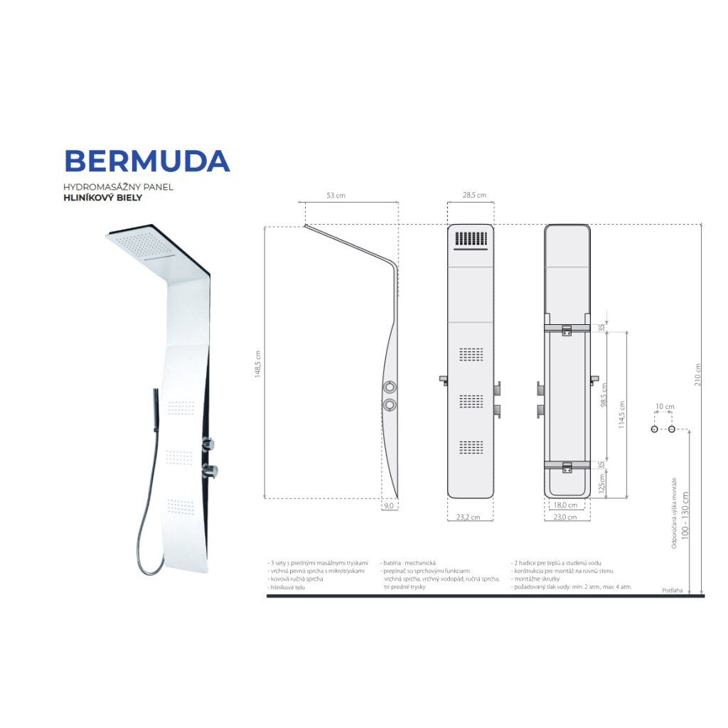 Hliníkový sprchový panel BERMUDA s termostatickou batériou