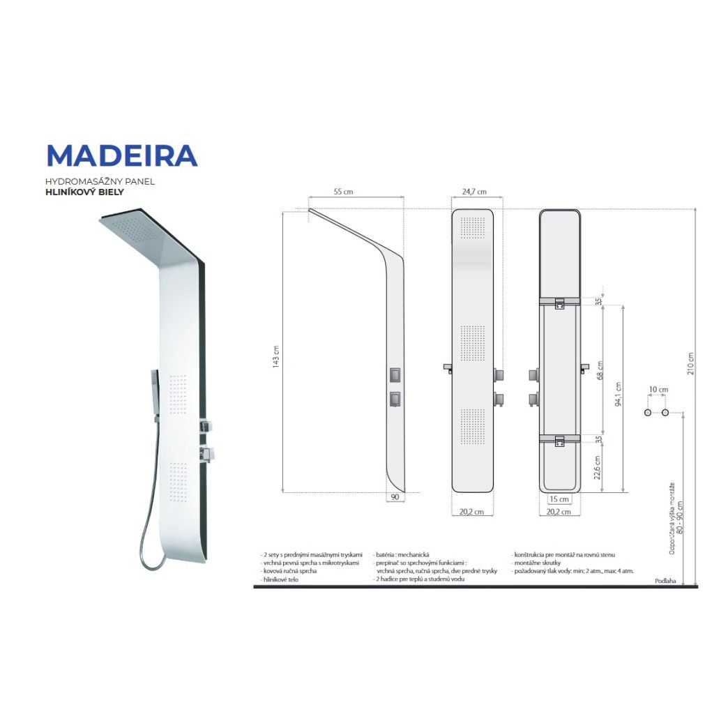Hliníkový sprchový panel MADEIRA s mechanickou batériou