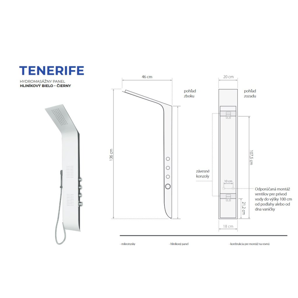 Hliníkový sprchový panel TENERIFE s mechanickou batériou