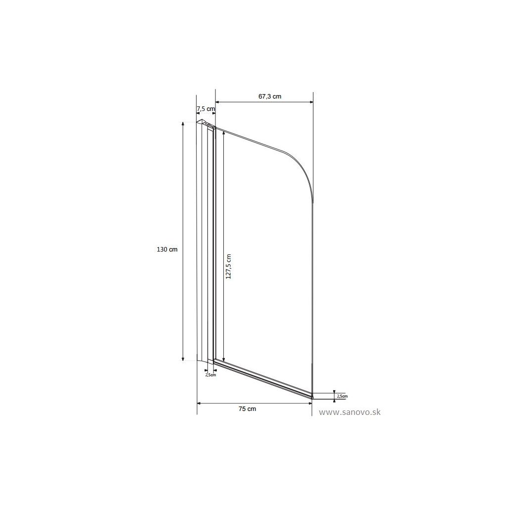 Besco AMBITION jednodielna vaňová zástena 75x130 cm