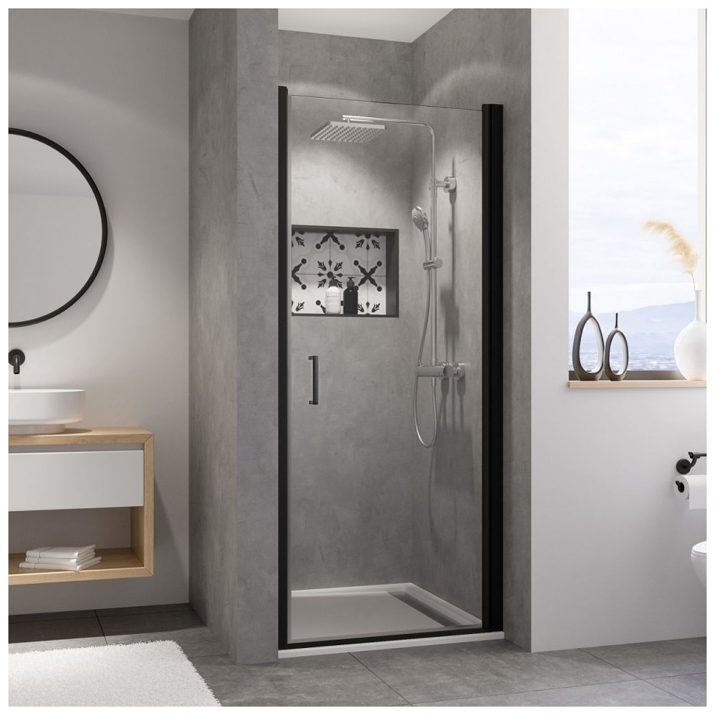 Sprchové dvere Sanovo T1 BLACK 90 sú jednokrídlové dvere, ktoré sa mechanicky otvárajú do vonkajšej strany do priestoru Vašej kúpeľne. Samotnú výplň dverí tvorí tvrdené bezpečnostné kalené sklo s hrúbkou 6 mm, ktoré je po bočných stranách vsadené do elegantného rámu v čiernom prevedení.