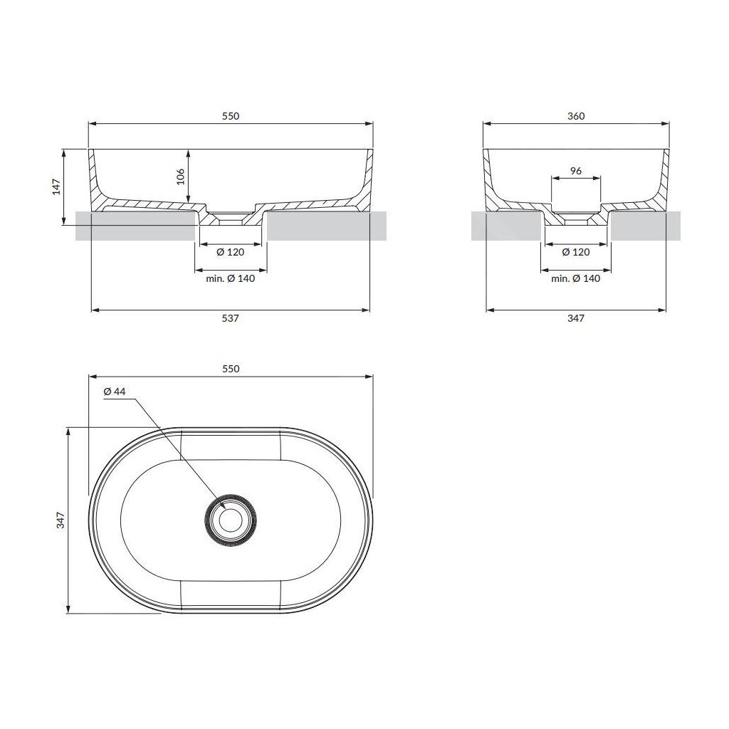 Umývadlo na dosku z kolekcie OMNIRES OVO M+ sa vyznačuje minimalistickou, výraznou formou s dokonalými proporciami. Tvar vytvorený hrou s geometriou tvoria dva protiľahlé polkruhy. Harmonicky profilované steny bloku sú ukončené plochým okrajom zvýrazňujúcim formu. Vo vnútri umývadla je dokonale zladený kryt odtoku, ktorý zaručuje najvyššiu estetiku.