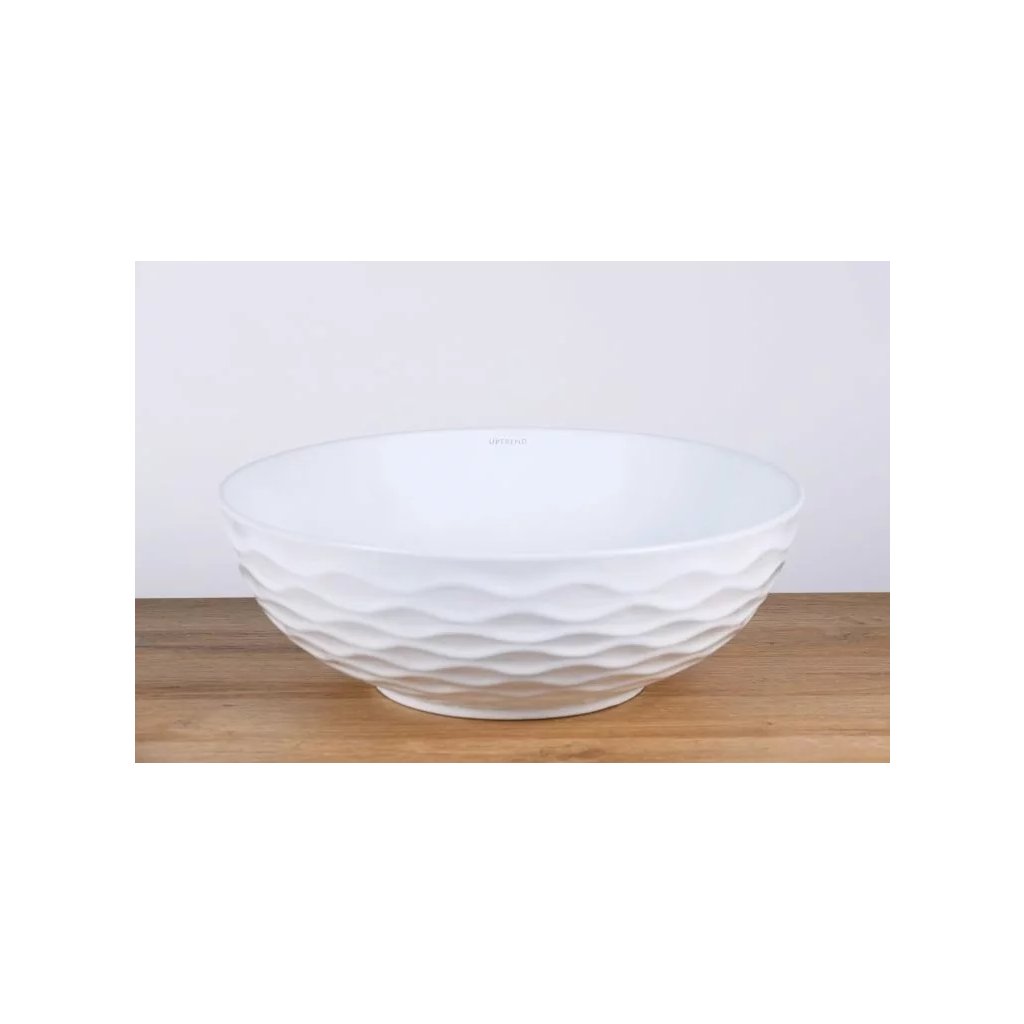 Keramické umývadlo Arya je unikátne umývadlo na trhu. Zvláštnosťou tohto umývadla je dekoratívna textúra na vonkajšej strane umývadla. Dodáva umývadlu dizajnový charakter a skrášľuje interiér celej kúpeľne. Široká misa (42 cm) umožňuje veľmi praktické používanie umývadla bez striekania vody na dosku.