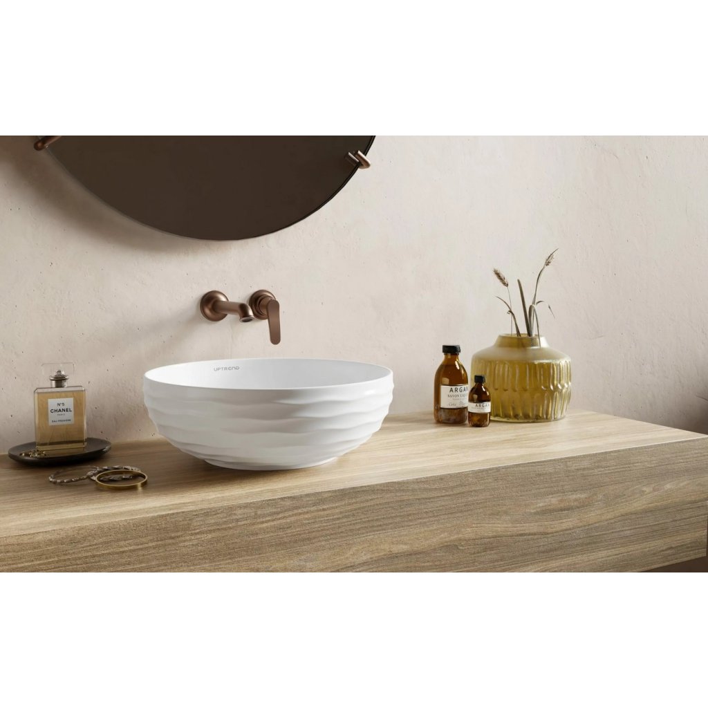 Zvláštnosťou umývadla Arya je jeho lesklá, krásna biela farba a dekoratívna textúra na vonkajšej strane umývadla. Toto umývadlo dokonale zapadne do netradičných dizajnov.