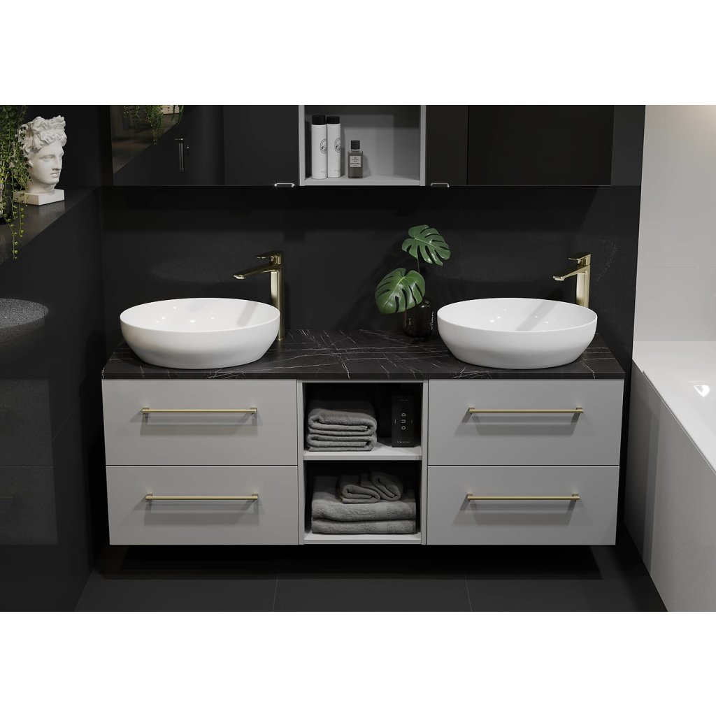 - sú vyrobené z kvalitnej, ľahkej a extrémne pevnej keramickej hmoty ROCKLITE, ktorá ľahko odoláva nárazom a zaťaženiu. Hrúbka okraja steny umývadla na dosku je len 5-6 mm, vďaka čomu sú tieto umývadlá veľmi ľahké a majú moderný vzhľad. Silver Protect poskytuje antibakteriálny účinok (ióny striebra v glazúre) a optimálnu ochranu pre hygienické účely vďaka účinnej inhibícii rastu baktérií. Jedinečná, antracitová glazúra umývadla na dosku Larga zdôrazní modernosť a štýl miestnosti a tmavý odtieň vnesie do interiéru nevšednú atmosféru, ktorá je výrazom štýlu a originálneho prístupu k dizajnu kúpeľne.